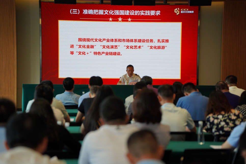 6月30日上午,按照中央、市委开展学习贯彻席大大新时代中国特色社会主义思想主题教育统一部署和市委组织部、市委宣传部工作要求,优发国际平台u8集团党委副书记、总经理田景斌以“深入学习贯彻席大大新时代中国特色社会主义思想,大力推动集团‘文化+’产业链高质量发展”为主题讲授专题党课,这是集团主题教育暨今年“党课开讲啦”活动第2堂专题党课。集团党委班子成员,全体党员,本部全体干部、子公司经营班子成员、集团派驻控股子公司负责人参加学习。市委宣传部主题教育巡回指导一组有关同志到会指导。